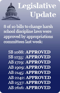 With the extraordinary support and an outpouring of calls and email letters, 8 of 10 bills supported by FixSchoolDiscipline.org cleared major hurdles in the California Legislature.